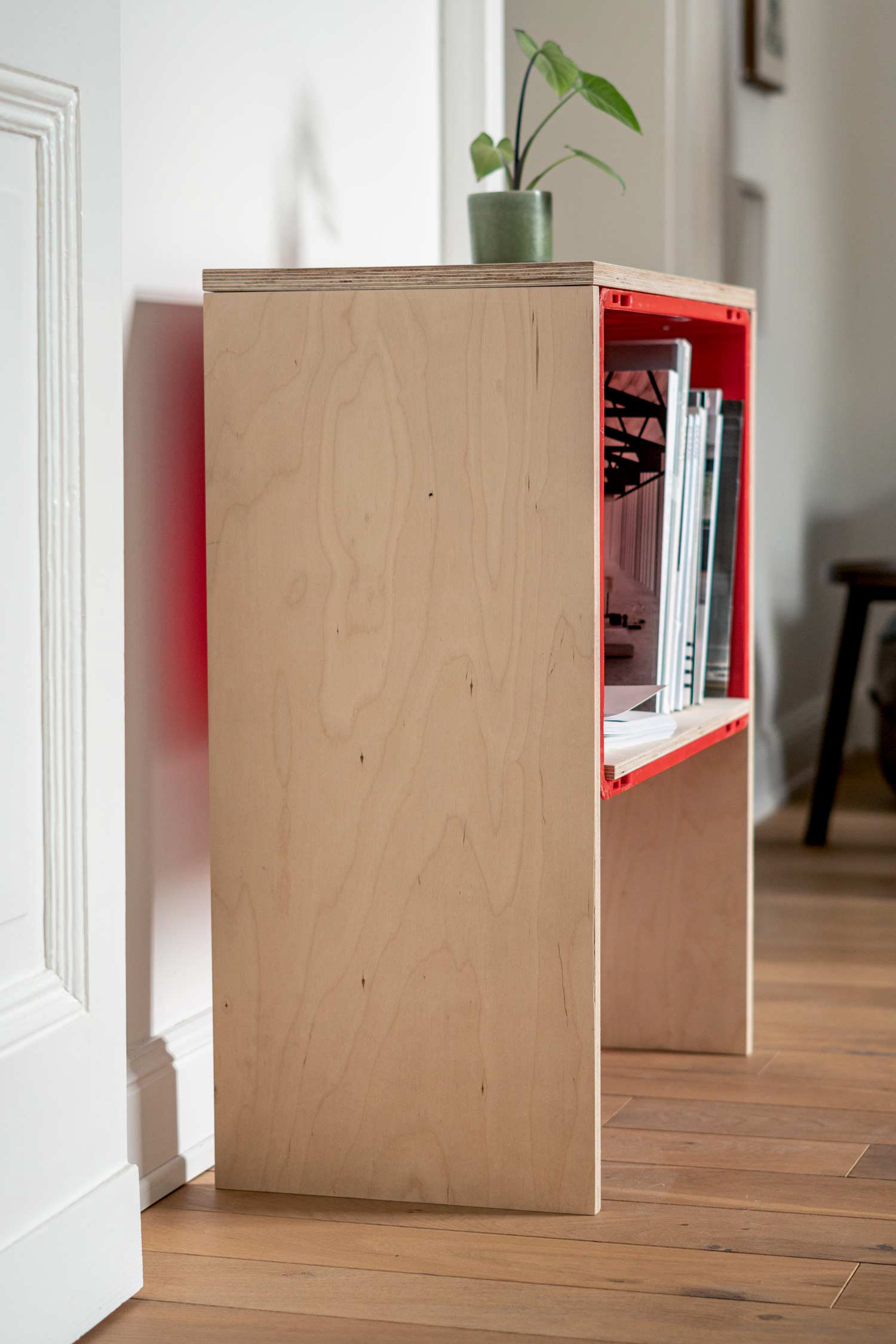 Ein Möbelsystem: Aus den Grundbausteinen können viele unterschiedliche Möbel entstehen.